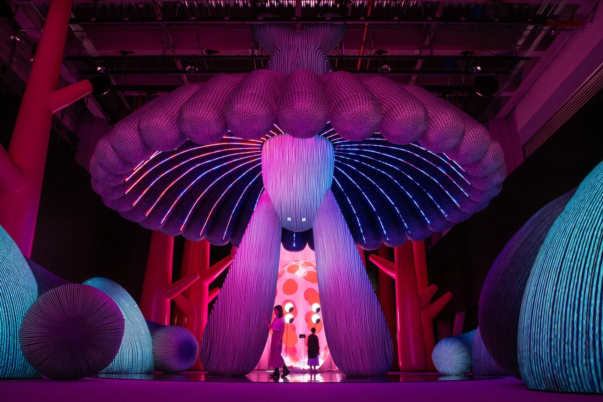 The installation brings to life enormous characters and vibrant, LED-laden, interactive spaces. ENESS explains that the experience has tripled in size from its initial debut in France, and now encompasses more than 1000 square metres.